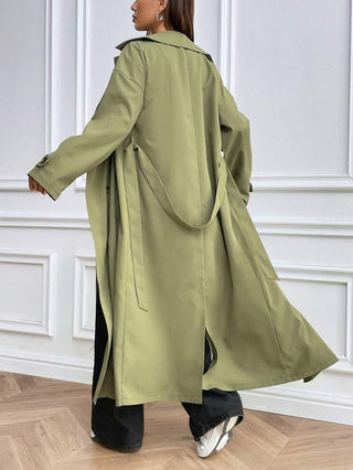 Damen Regenmantel Mit Doppelknopfreihe Und Taillengürtel | Lang