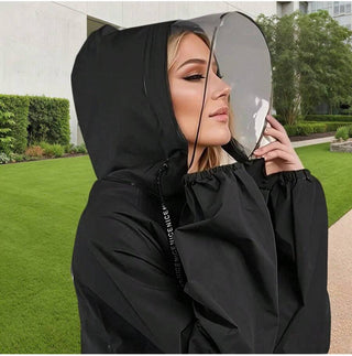 Damen Regenmantel Mit Kapuze Und Gesichtsschutz | Regen