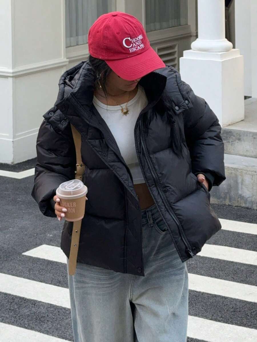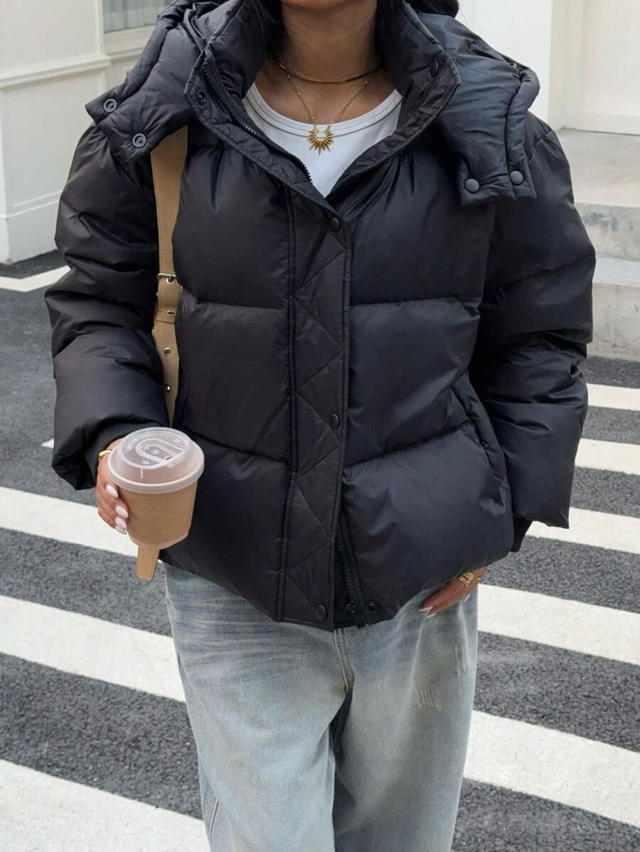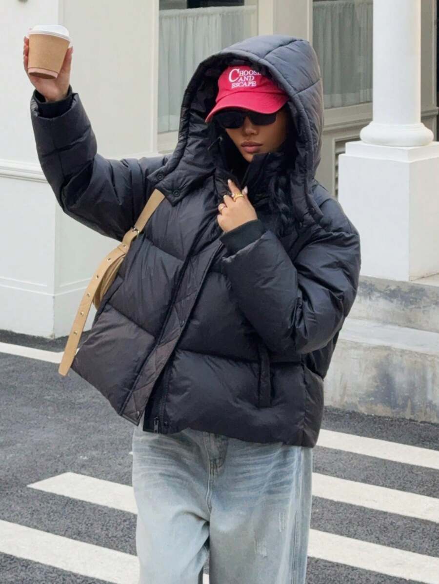 Damen Daunenjacke Mit Kapuze Im Kurzen Puffer-Stil | Winter