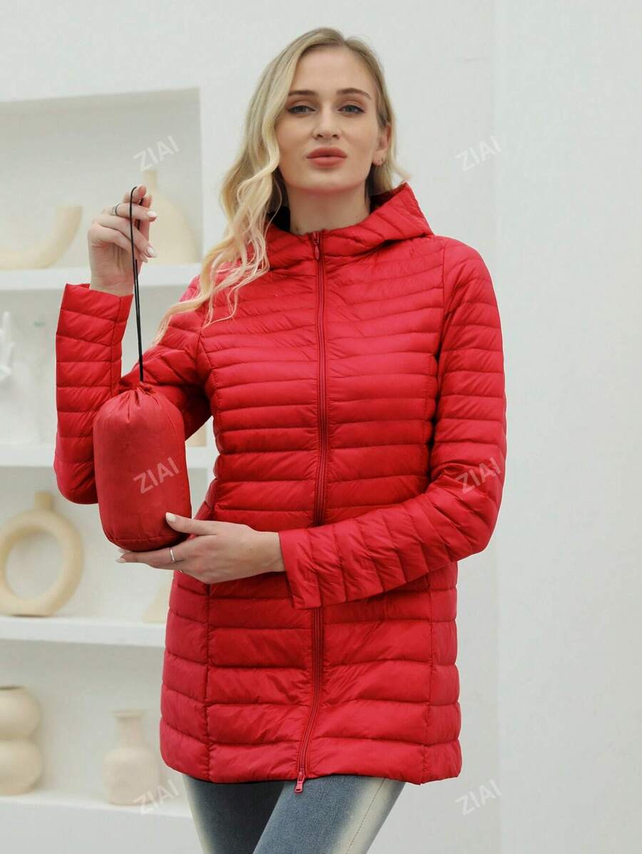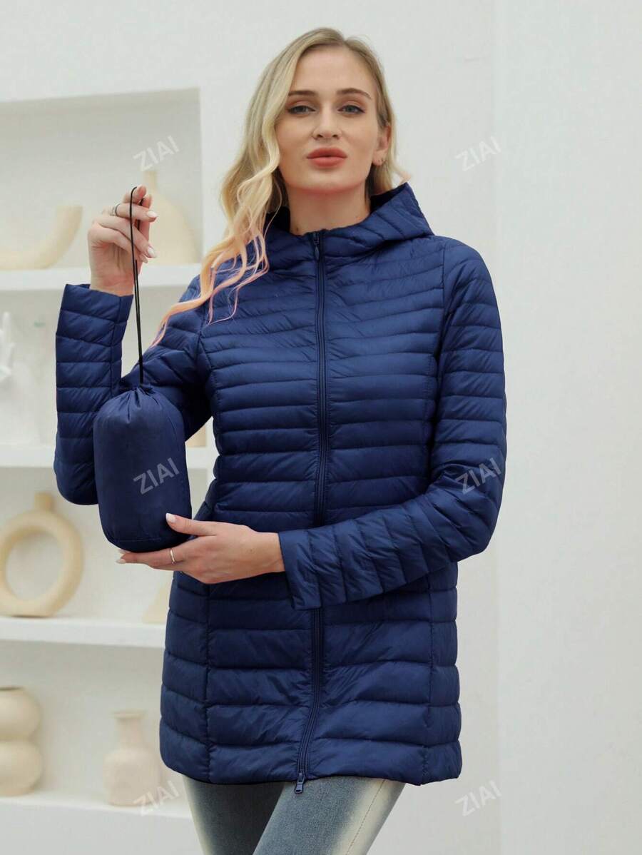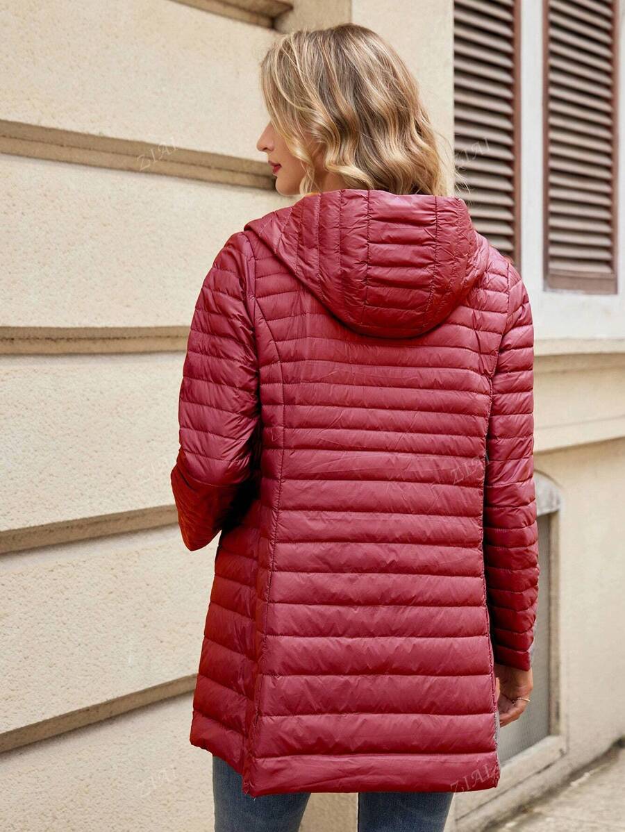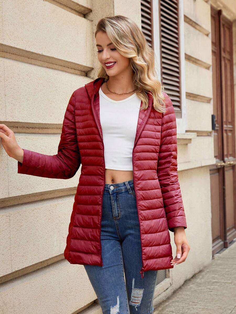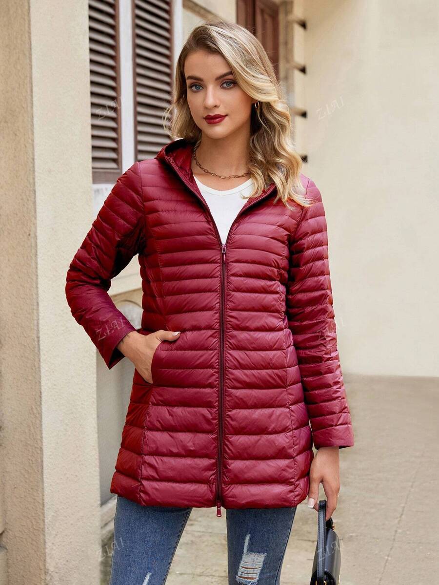 Damen Daunenjacke Mit Kapuze In Schlanker Langform | Übergangs