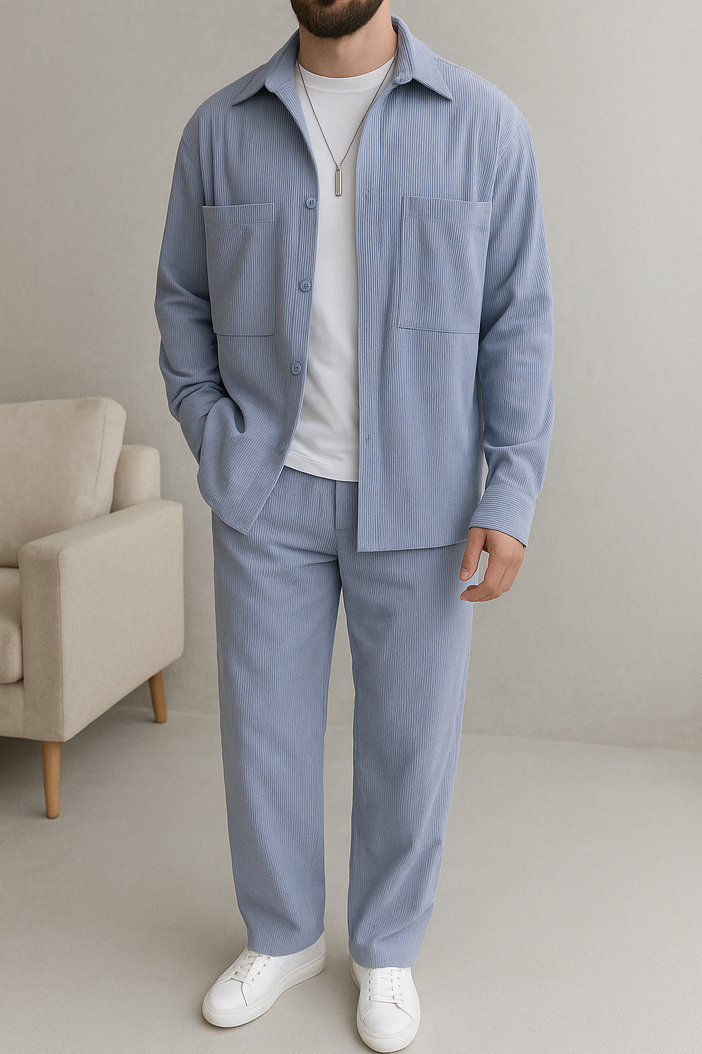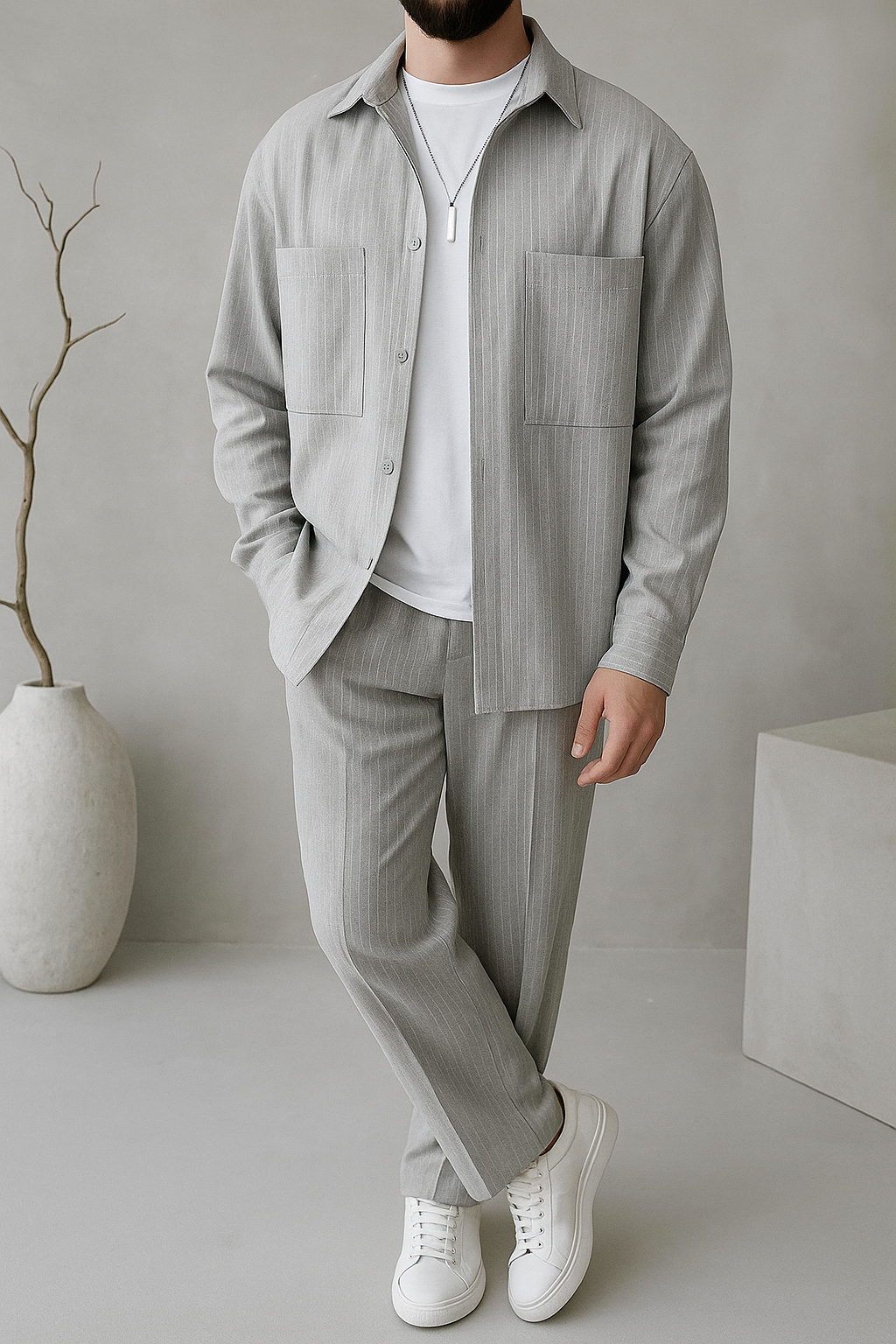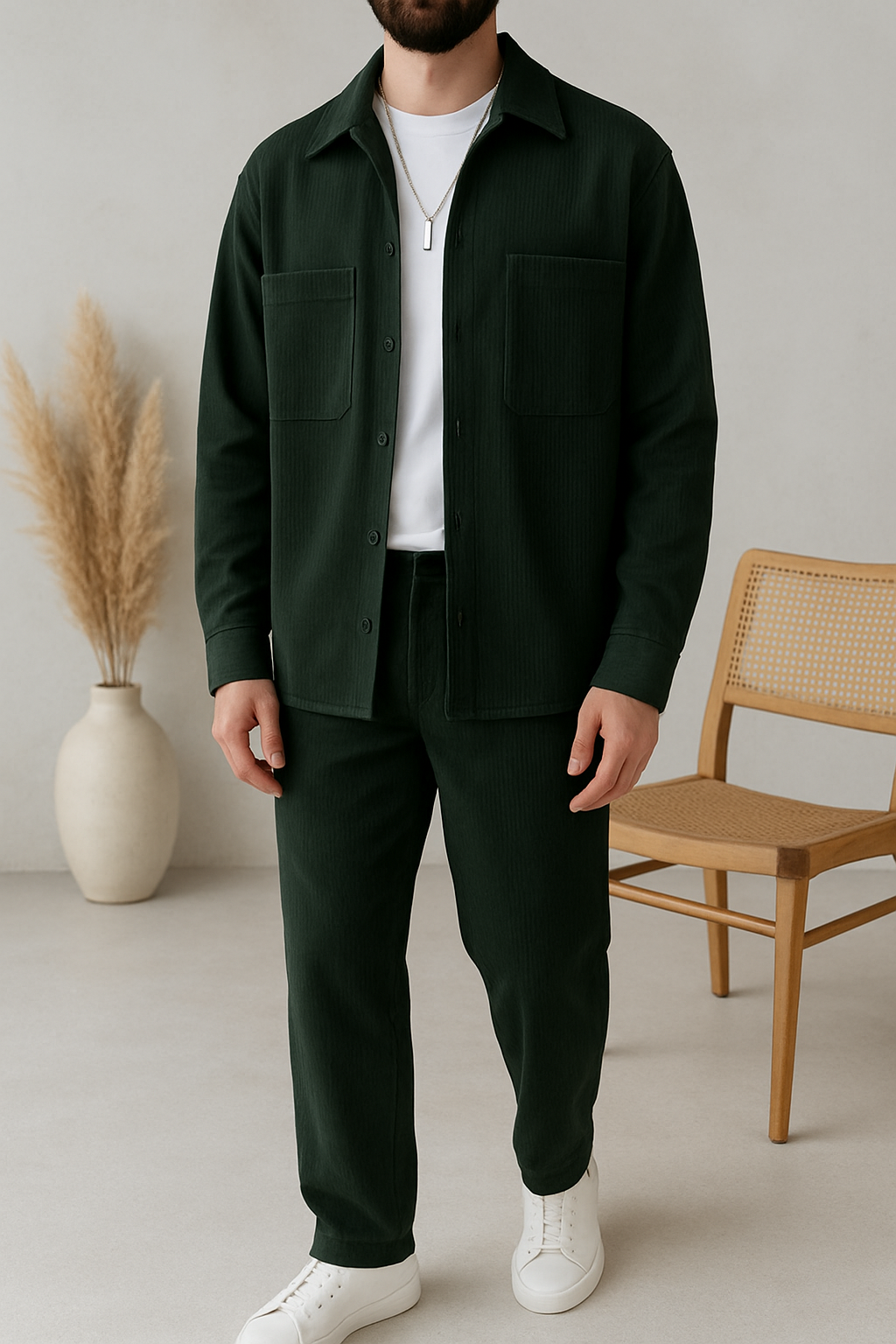 Mit dem KlassikSet erhältst du ein stilvolles Upgrade für deinen Alltag – einfach anziehen und selbstbewusst auftreten. Die moderne Kombination aus Oberteil und Hose sorgt für einen zeitlosen Look, der in jeder Situation überzeugt. Perfekt für Männer, die Komfort und Stil schätzen, ohne Kompromisse einzugehen.