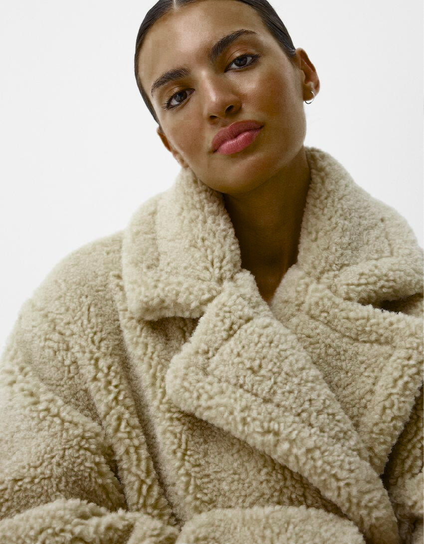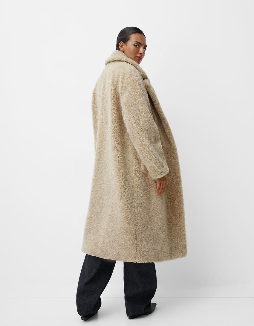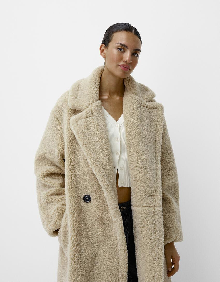 Teddy Damen Mantel Mit Reverskragen | Langer Schnitt